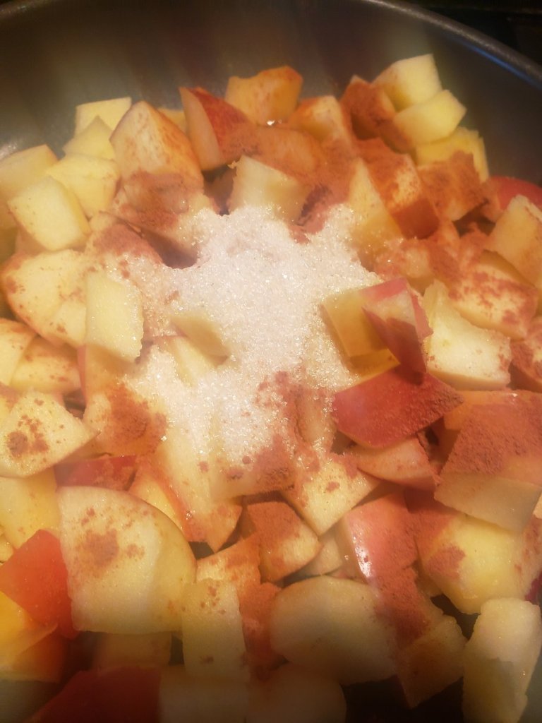 Chop and cook some apples with a little sugar and a little cinnamon: