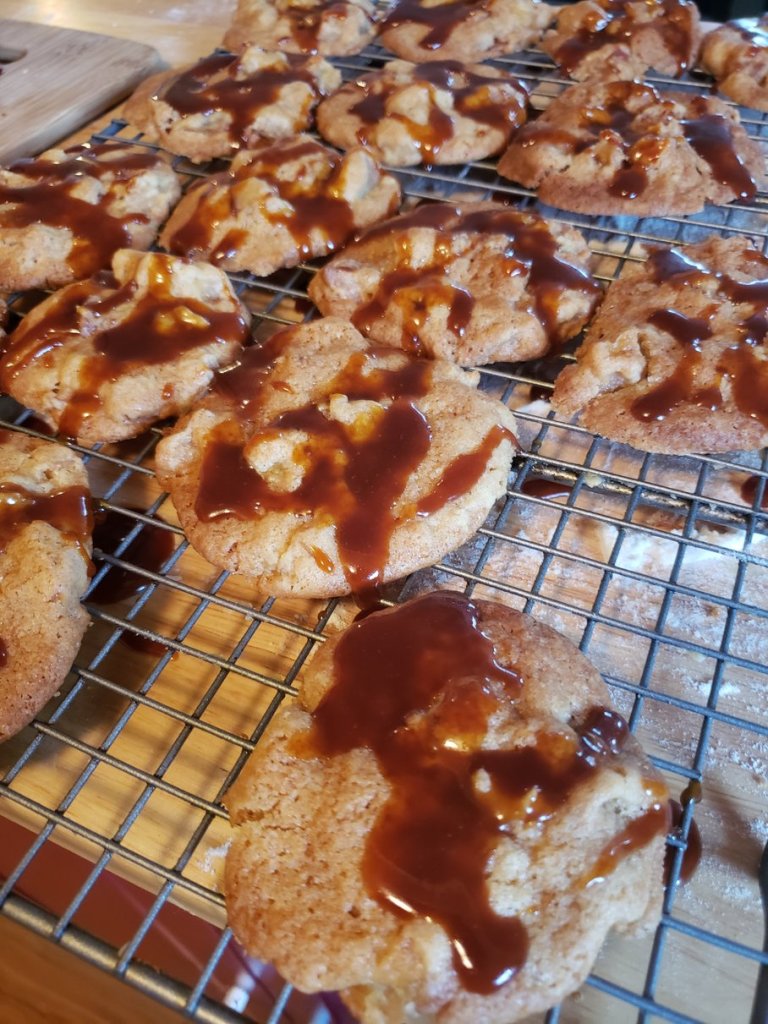 Drizzle with some caramel sauce. You can do this at any stage, while the sauce and the cookies are hot, warm, or cool. The result will look different (with more or less definition to the caramel drizzle) but will taste great just the same.
