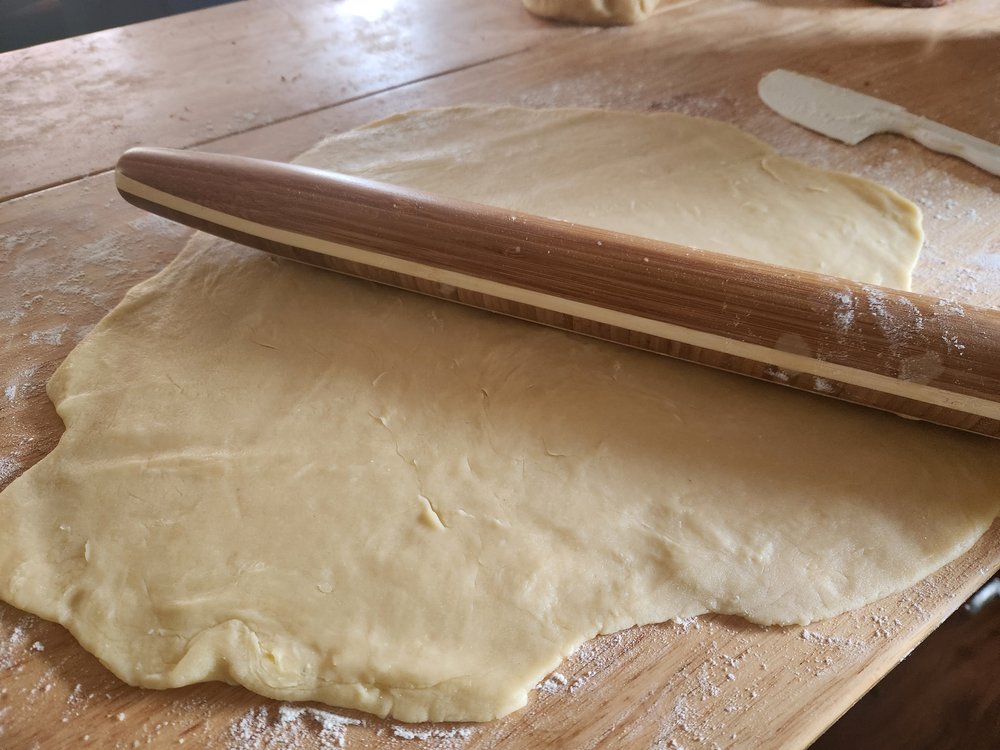 - Roll the dough out quite thinly (3 mm or about 1/8 inch)